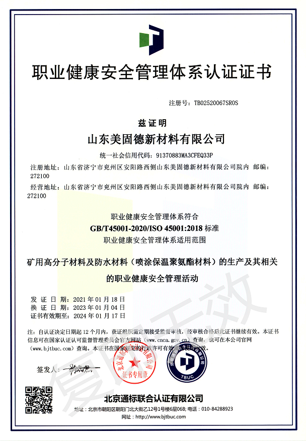 山東美固德新材料有限公司為高新技術(shù)企業(yè),坐落于中國工業(yè)強區(qū)、大禹定九州之地的山東省級工業(yè)園-兗州化學助劑產(chǎn)業(yè)園。公司2011年始建于青島,2016年為濟寧市重點招商項目落戶于兗州,公司專注于為煤礦安全生產(chǎn)提供可靠的礦用化學材料和解決方案。公司2018年同青島科技大學(原青島化工學院)高分子科學與工程學院簽訂技術(shù)合作協(xié)議,分別在兗州和青島設(shè)立了研發(fā)實驗室和應(yīng)用發(fā)展實驗室,并建立了研究生實踐基地。2021年3月12日與中國聚氨酯協(xié)會特聘專家團隊簽訂了戰(zhàn)略合作協(xié)議,致力于聚氨酯高端領(lǐng)域的配方設(shè)計、生產(chǎn)及應(yīng)用,為生產(chǎn)優(yōu)質(zhì)的產(chǎn)品提供強有力的技術(shù)保障。
